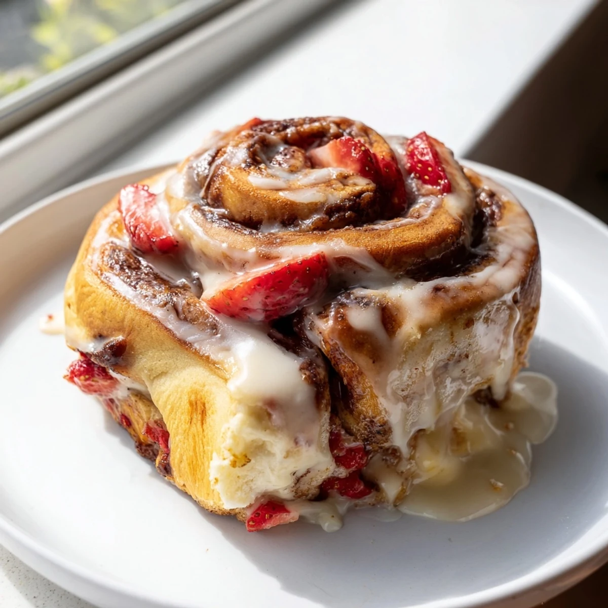 These soft, pillowy cinnamon rolls combine three beloved flavors into one irresistible treat. A buttery yeast dough gets rolled with rich cheesecake filling, sweet strawberry compote, and warm cinnamon sugar, then baked until golden. The crowning glory is a creamy vanilla glaze that seeps into every warm layer.